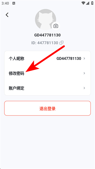 3、在個人信息頁面點擊修改密碼,進入重新設置密碼頁面。
