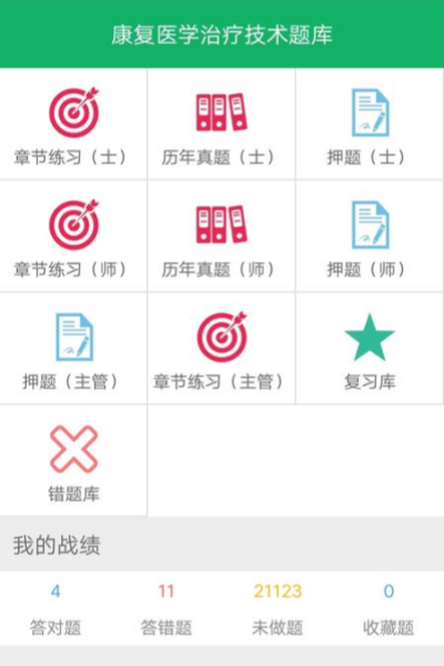 康復(fù)醫(yī)學(xué)題庫(kù)app是一款備考題庫(kù)軟件,具有模擬押題、錯(cuò)題練習(xí)、題目收藏等功能,覆蓋考試中的全部專業(yè)知識(shí),每個(gè)知識(shí)點(diǎn)都講解得十分透徹,還可以幫助你提前熟悉考試環(huán)境與流程,不用再為考試而感到緊張,而且每一道試題都有詳細(xì)的答案解析,隨時(shí)隨地都可以進(jìn)行練習(xí),需要進(jìn)行康復(fù)醫(yī)學(xué)治療技術(shù)考試的朋友快來綠色資源網(wǎng)下載吧。