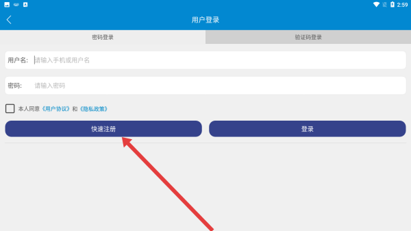 2、在用戶登錄頁面,若沒有賬號(hào)可以點(diǎn)擊快速注冊(cè)按鈕,進(jìn)行注冊(cè)賬號(hào)。