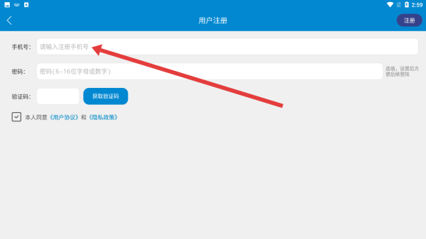 3、在進(jìn)入到用戶注冊(cè)頁面中,輸入手機(jī)號(hào)等信息完成注冊(cè)賬號(hào)。