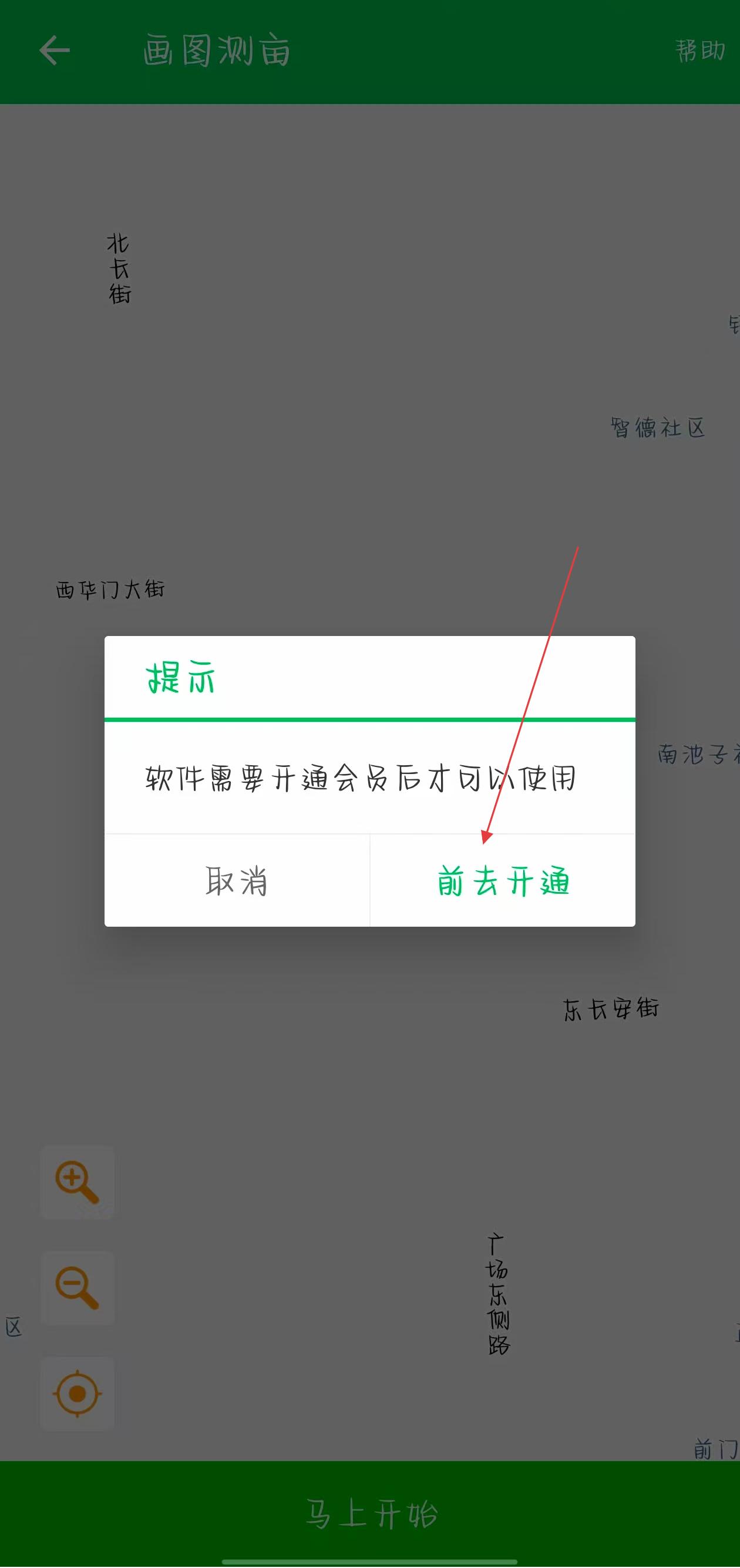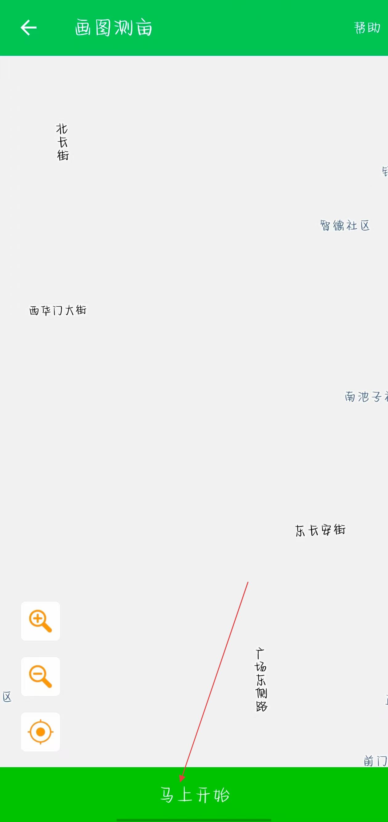2、在畫圖測畝頁面中,點擊底部綠色的馬上開始按鈕,進入地塊繪制模式。