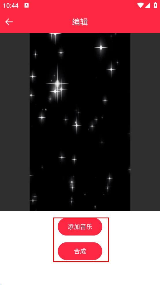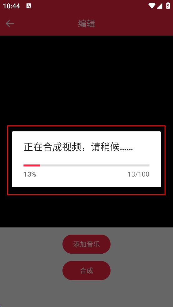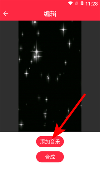 3、進入編輯頁面,可選擇添加音樂,點擊合成。