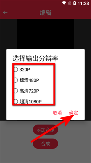 4、添加音樂后,選擇輸出分辨率,點擊確定按鈕,即可開始制作音樂相冊。