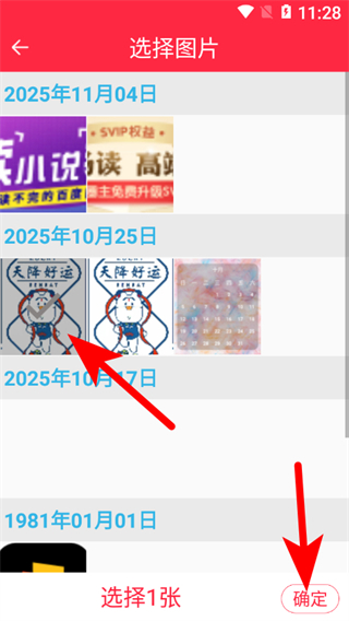 2、在圖片選擇界面,選擇想要制作成音樂相冊的圖片,點擊確定按鈕。