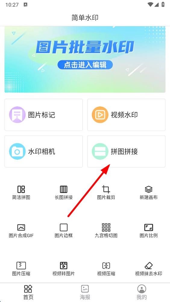 1、打開簡單水印app,在首頁點擊拼圖拼接選項。