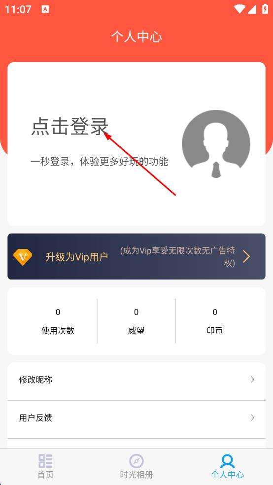 2、在個(gè)人中心頁面,點(diǎn)擊點(diǎn)擊登錄。
