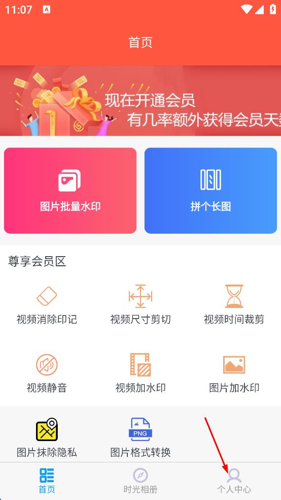 1、打開微商水印管家APP首頁,點(diǎn)擊右下角個(gè)人中心。