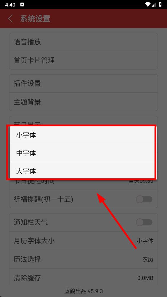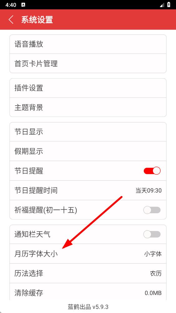 3、在系統(tǒng)設(shè)置頁面中,找到月歷字體大小選項(xiàng)并點(diǎn)擊它。