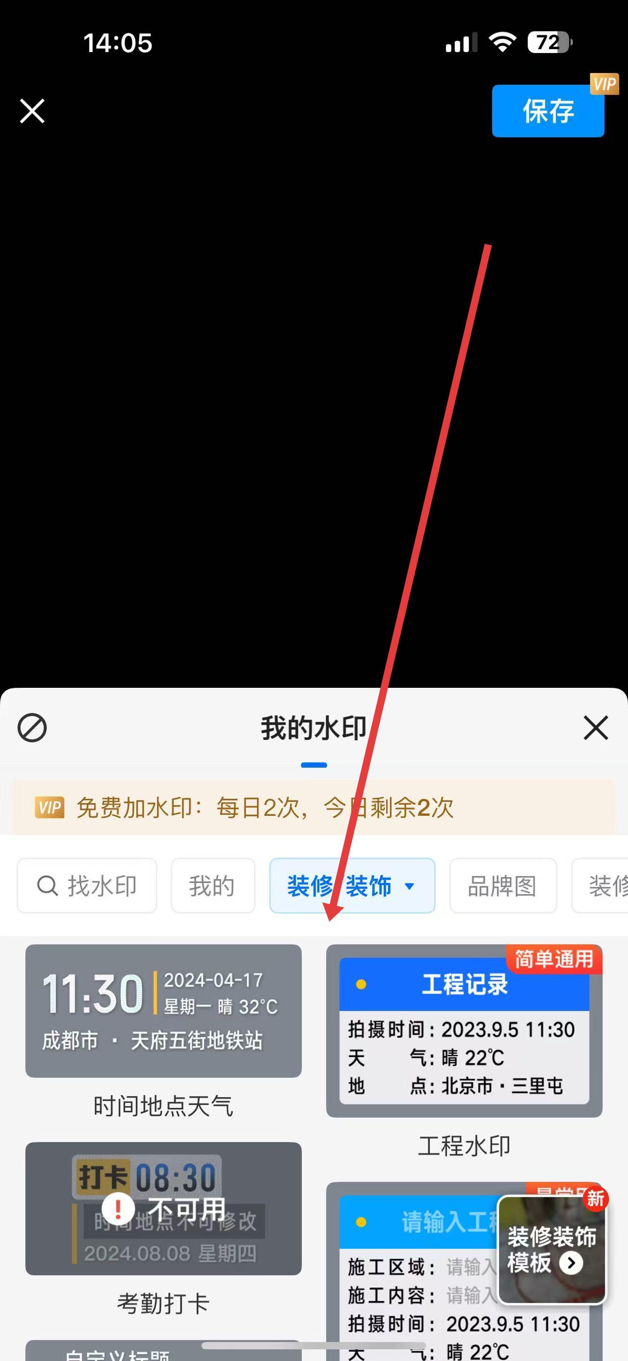 2、在編輯水印的模板選擇頁面,找到帶有時間地點(diǎn)信息的水印模板,如工程記錄等模板。