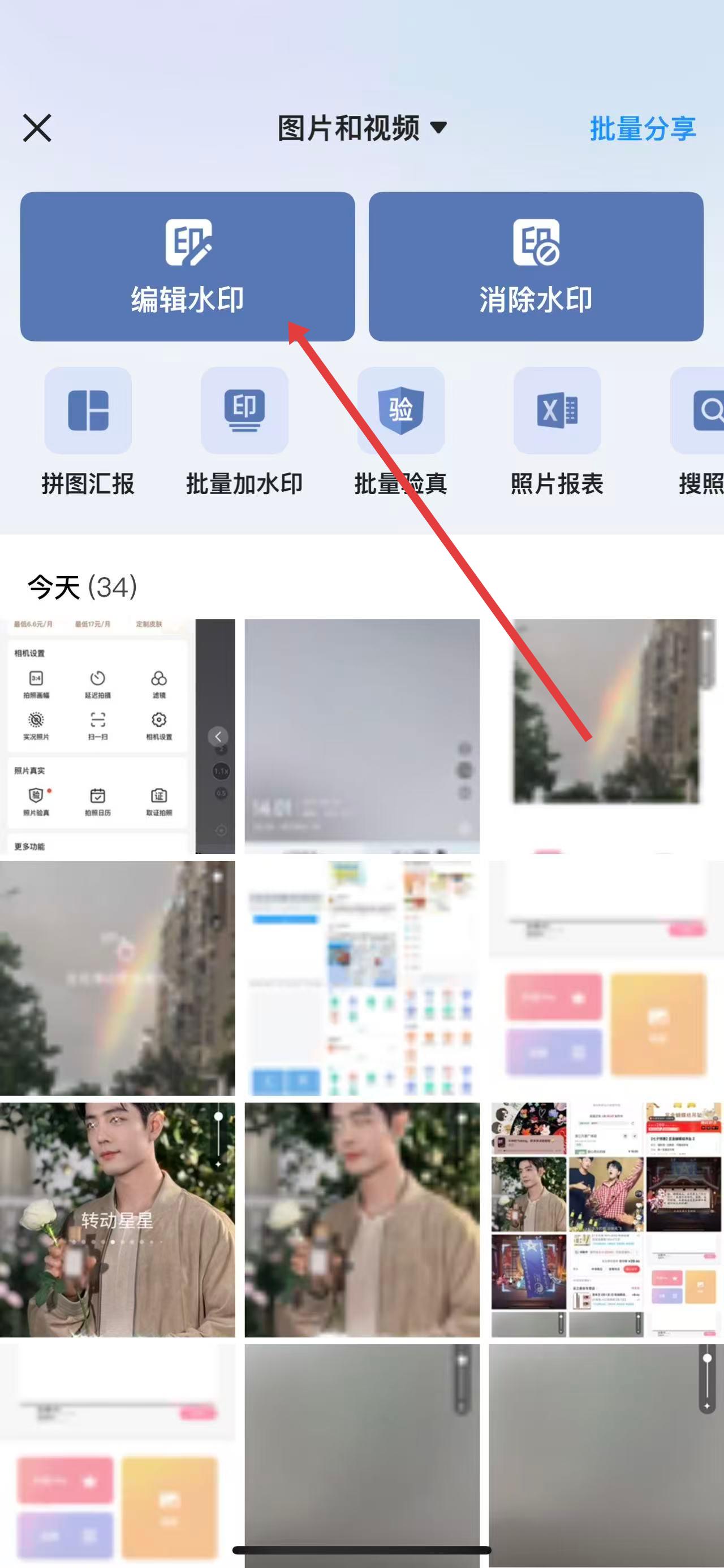 1、打開今日水印相機(jī),進(jìn)入圖片和視頻界面,點(diǎn)擊編輯水印選項(xiàng)。