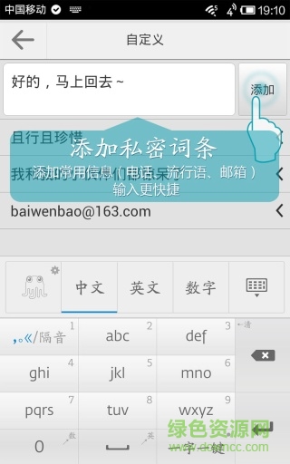 依靠私密詞條自定義功能,你就不用重復輸入眾多常用的內容,如郵箱、網址、電話等。反復輸入很煩的有木有!?