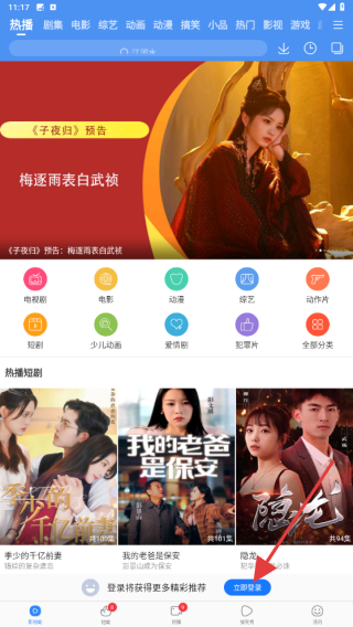 1、打開(kāi)百度影視大全APP,一進(jìn)入首頁(yè)會(huì)彈出立即登錄的按鈕,點(diǎn)擊即可。
