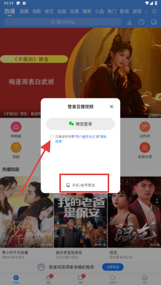 1、打開(kāi)百搜視頻應(yīng)用,進(jìn)入時(shí)點(diǎn)擊要下載的電視劇。
