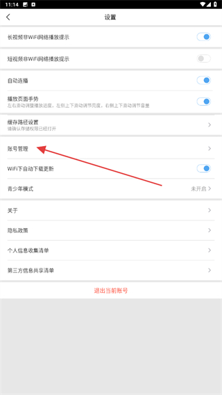 3、進(jìn)入設(shè)置的界面內(nèi),點(diǎn)擊賬號(hào)管理的功能按鈕。