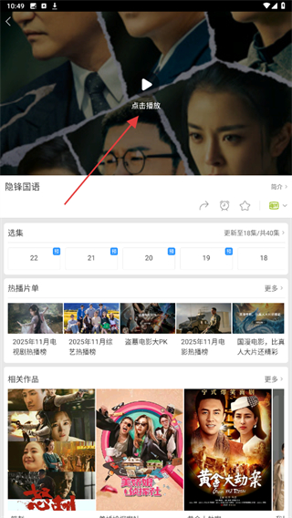 2、進(jìn)入視頻的頁(yè)面內(nèi),點(diǎn)擊播放的按鈕即可跳轉(zhuǎn)。