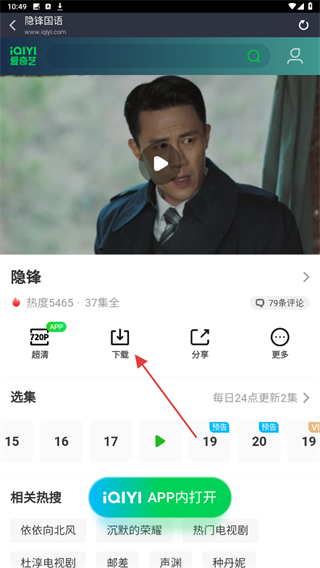 3、在播放的頁(yè)面內(nèi),點(diǎn)擊下方下載的按鈕即可開(kāi)始。