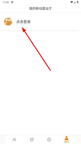 2、在我的移動營業(yè)廳頁面,點擊點擊登錄選項。