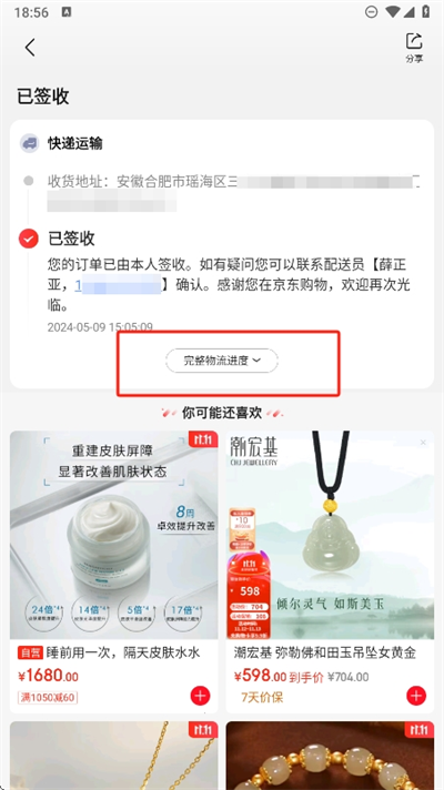 4、進入后就可以看到所有相關(guān)的物流信息,并且還能了解查看到運輸?shù)臅r間和到達站點的更新等物流信息。
