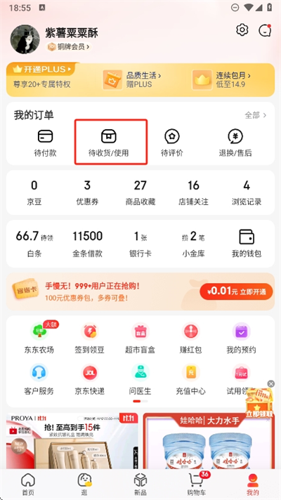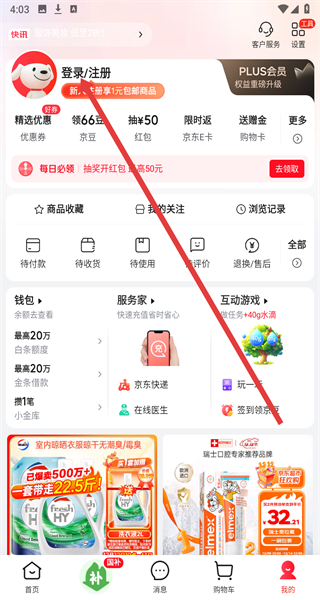 1、在京東APP首頁點擊右下角“我的”,進入個人中心頁面。