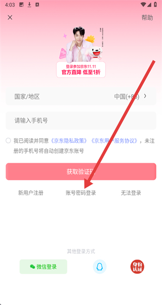 3、在跳轉(zhuǎn)到登錄頁面后,要想切換為密碼登錄,可以點擊下方賬號密碼登錄按鈕。
