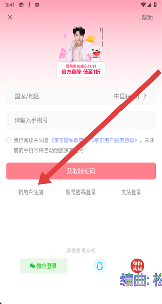3、點擊“新用戶注冊”,進入手機快速注冊頁面。