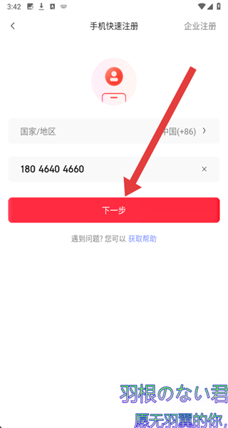 4、輸入手機號碼,點擊“下一步”,獲取驗證碼后完成賬號注冊流程。