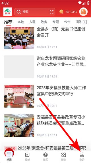1、進入美好安福的首頁,需要點擊底部我的,進入個人的頁面。