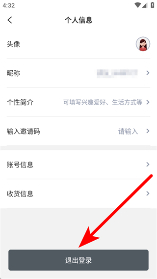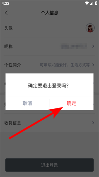 3、在個人信息的界面中,需要點擊退出登錄的按鈕,彈出系統(tǒng)的確認框。
