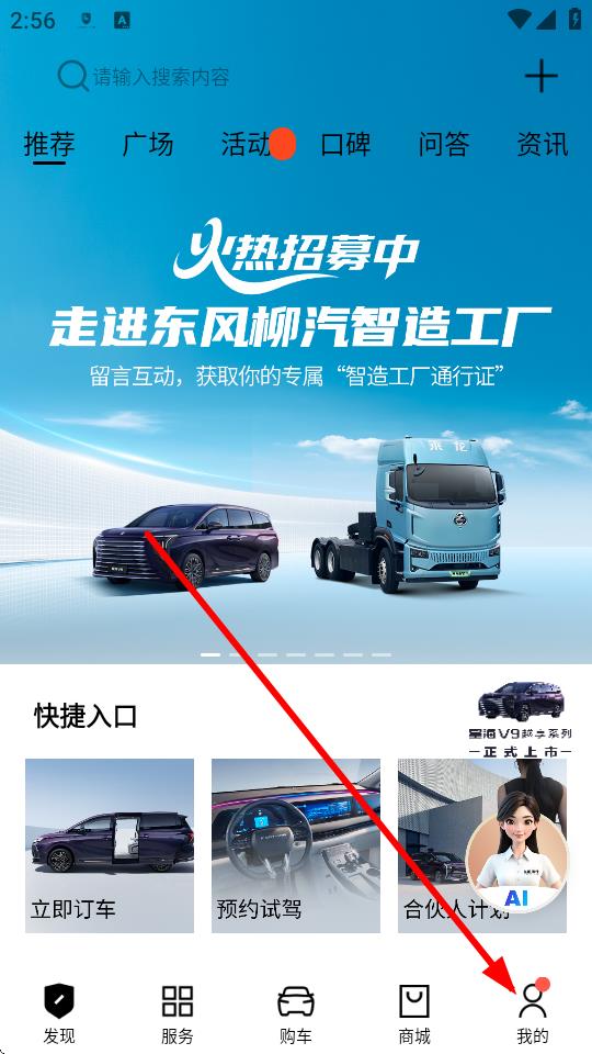1、打開東風(fēng)風(fēng)行app,進(jìn)入首頁后點(diǎn)擊底部我的選項(xiàng)。