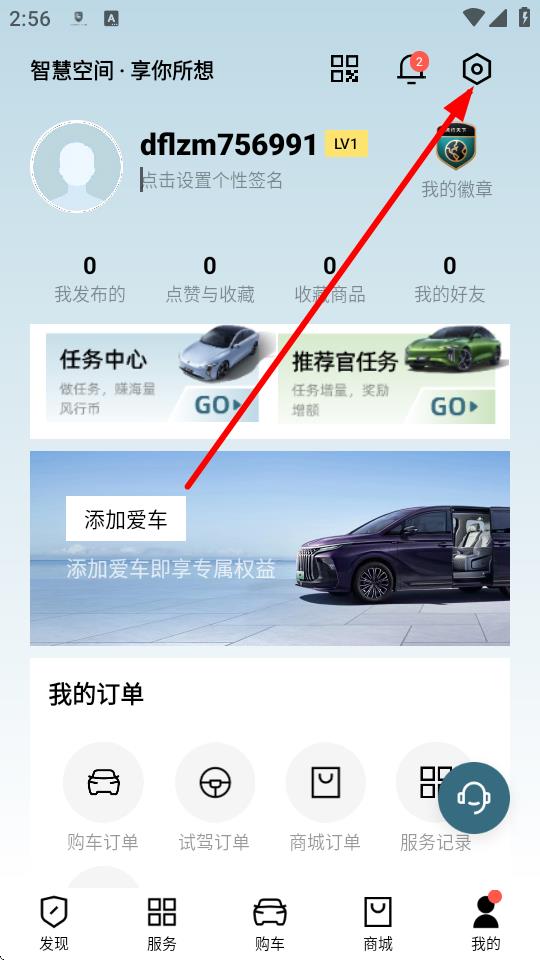 2、在我的頁面,點(diǎn)擊右上角的設(shè)置圖標(biāo)。