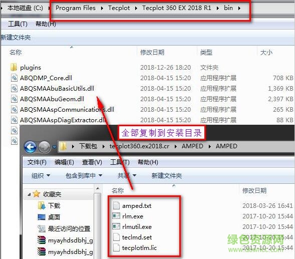 8.解壓AMPED文件夾,將里面的所有文件復(fù)制到安裝目錄C:\Program Files\Tecplot\Tecplot 360 EX 2018 R1\bin,提示覆蓋全部選擇是;