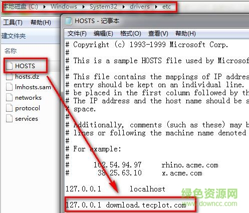9.右鍵用記事本打開hosts文件(hosts位于\Windows\System32\drivers\etc),在最后加上127.0.0.1 download.tecplot.com,然后保存