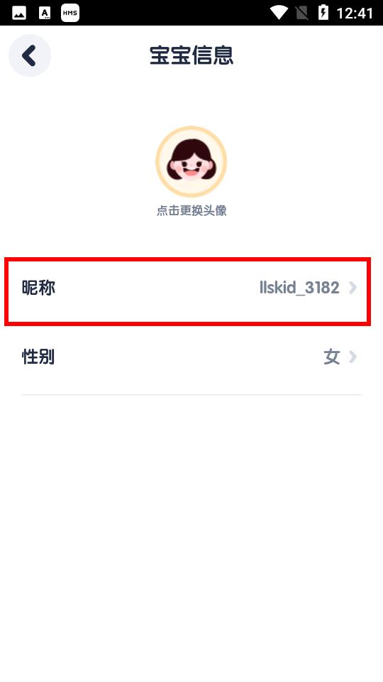 3、在信息頁面中,找到昵稱選項,點擊進入修改昵稱界面。