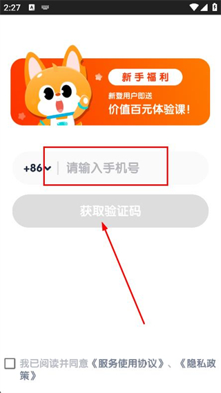2、進入登錄頁面,輸入手機號,并點擊獲取驗證碼。