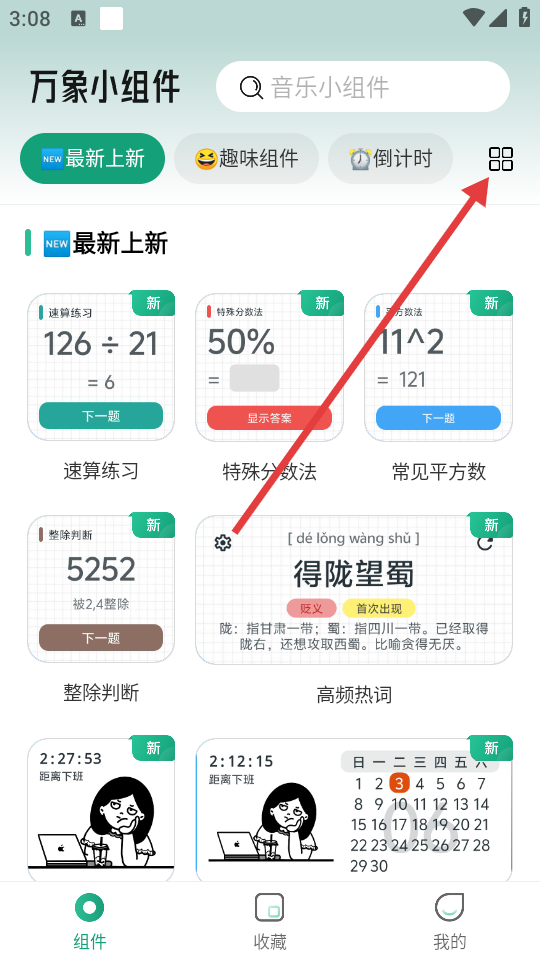 1、打開萬象小組件APP,點擊界面右上角的全部分類圖標。
