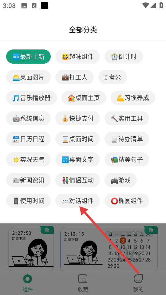 2、在全部分類頁面,點擊對話組件分類標簽。