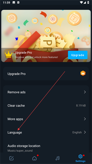 2、在設(shè)置頁面點(diǎn)擊Language選項(xiàng),進(jìn)入語言選擇頁面。