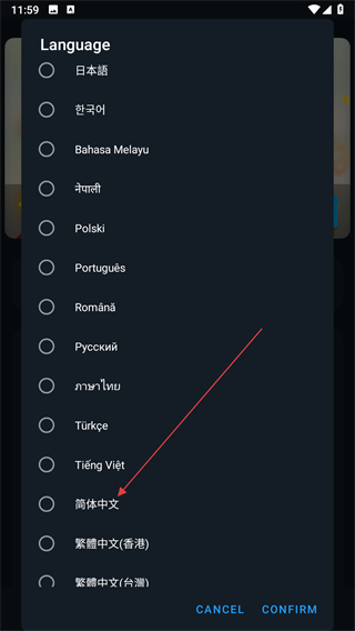 3、進(jìn)入語言選擇頁面之后,找到并選擇簡(jiǎn)體中文選項(xiàng)。