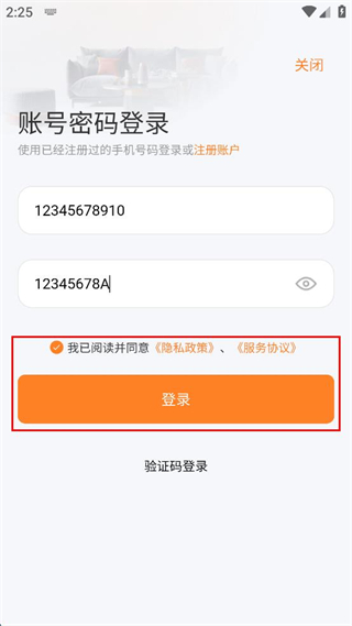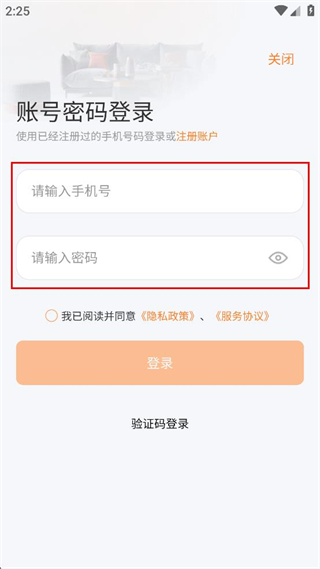 3、在賬號密碼登錄頁面,輸入手機(jī)號和密碼。