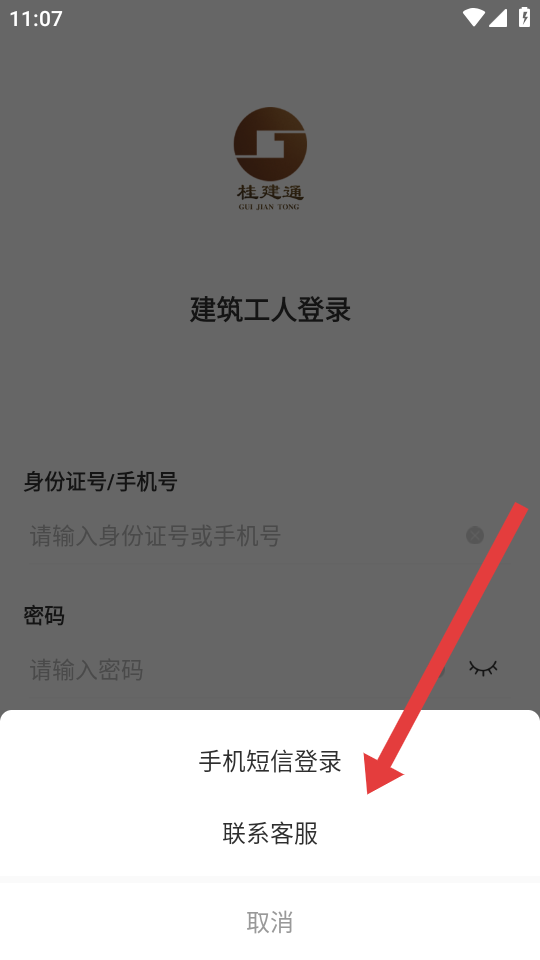 3、在登錄頁底部彈出的選項(xiàng)中,選擇手機(jī)短信登錄或者聯(lián)系客服,獲取其他的登錄方式支持。