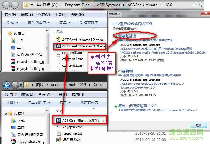 1.打開(kāi)“Crack”文件夾將里面的“ACDSeeUltimate2019.exe”復(fù)制到安裝目錄進(jìn)行覆蓋(默認(rèn)路徑:C:\Program Files\ACD Systems\ACDSee Ultimate\12.0)