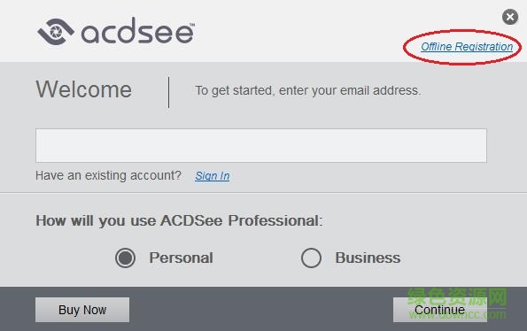 2.打開(kāi)acdsee2019,會(huì)提示需要注冊(cè),選擇右上角的“Offline Registeration”