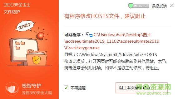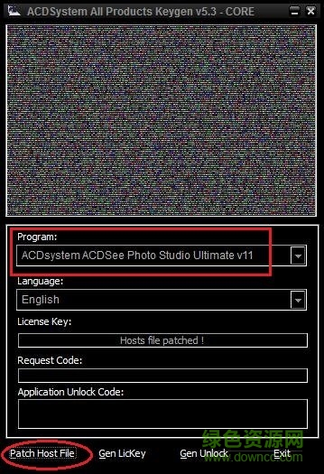 4.注冊(cè)機(jī)“Program”那下拉選擇“ACDsystem ACDSee Photo Studio Ultimate v11”,再點(diǎn)擊“patch host file”,360安全衛(wèi)士等殺毒軟件會(huì)提示修改host,選擇運(yùn)行