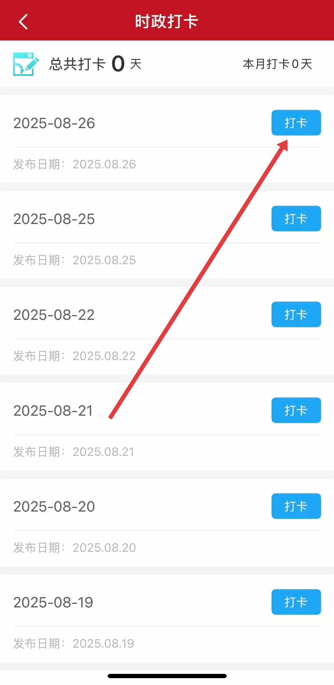 2、進(jìn)入時(shí)政打卡頁(yè)面,找到對(duì)應(yīng)的日期,點(diǎn)擊打卡鍵。