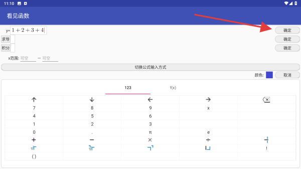 3、進入到函數(shù)的界面內(nèi),在輸入框內(nèi)輸入函數(shù)內(nèi)容后,點擊右側確定的按鈕。