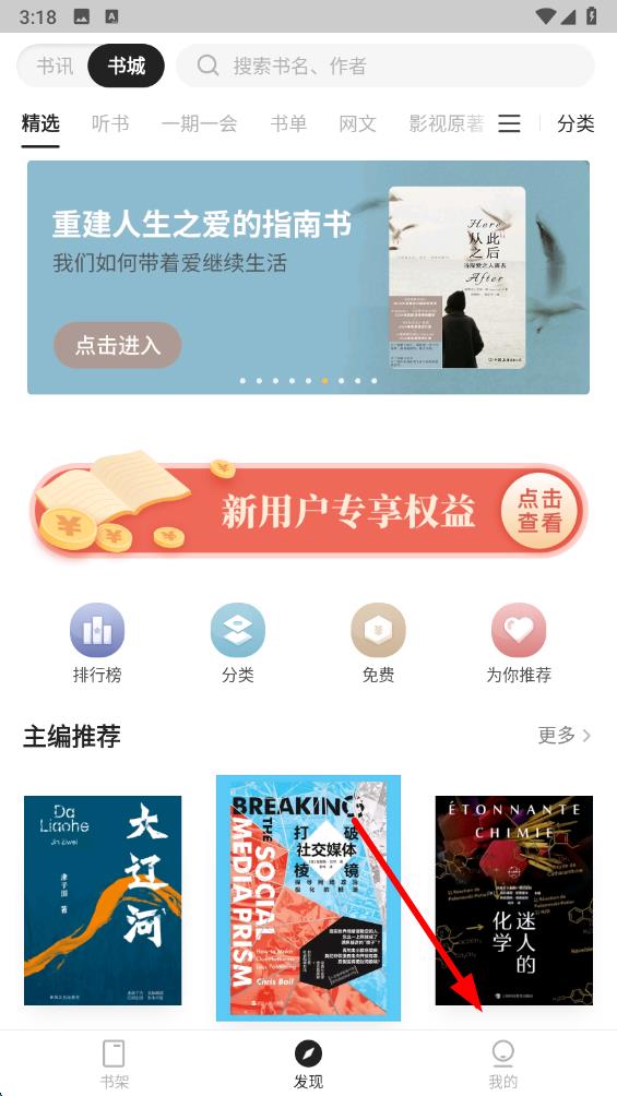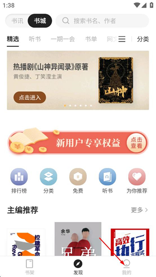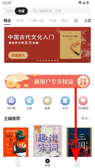 1、在掌閱精選發(fā)現(xiàn)頁面,點擊右下角我的選項,進入個人頁面。