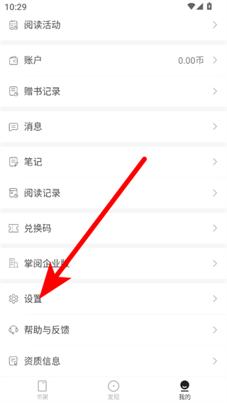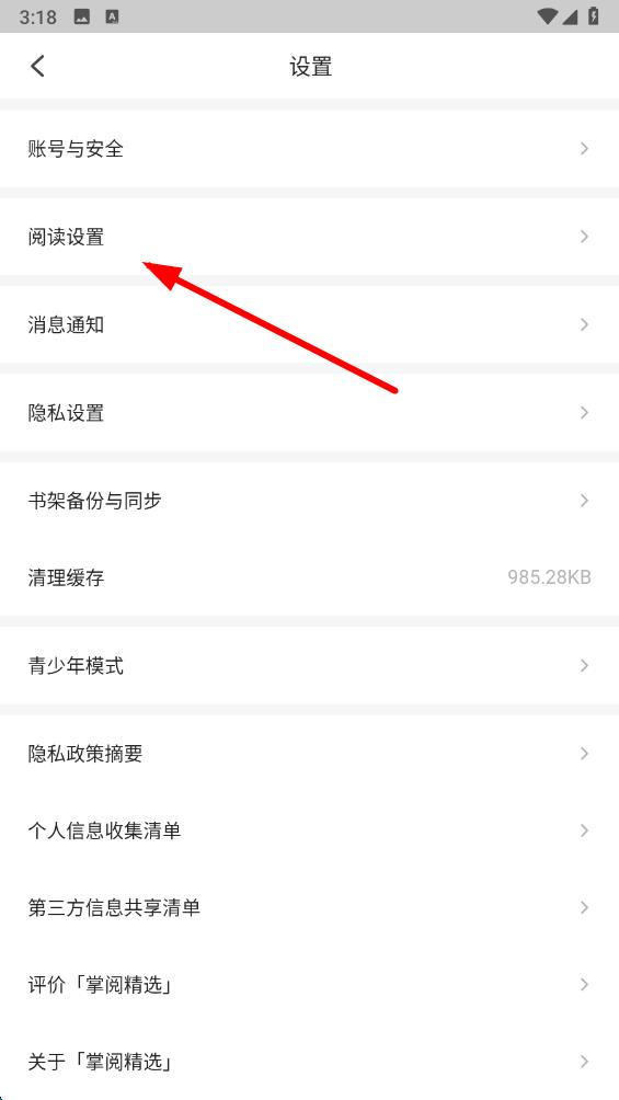 3、在設(shè)置頁面里,點擊閱讀設(shè)置選項,進入閱讀設(shè)置相關(guān)界面。