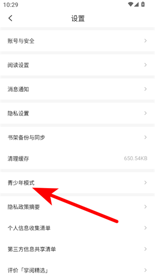 3、在設(shè)置頁面,點擊青少年模式選項,進入青少年模式設(shè)置界面進去開啟。