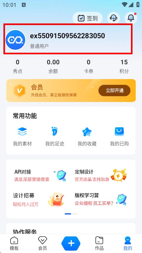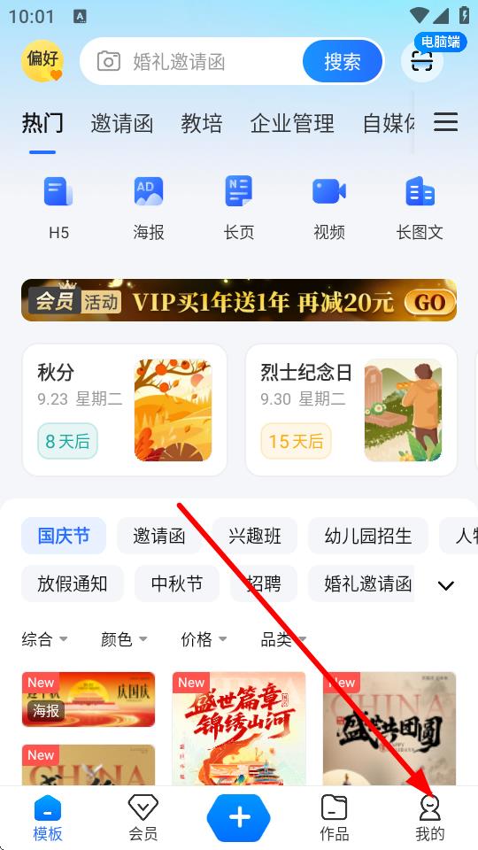 1、打開易企秀APP,點擊底部導航欄中的我的選項進入個人中心。
