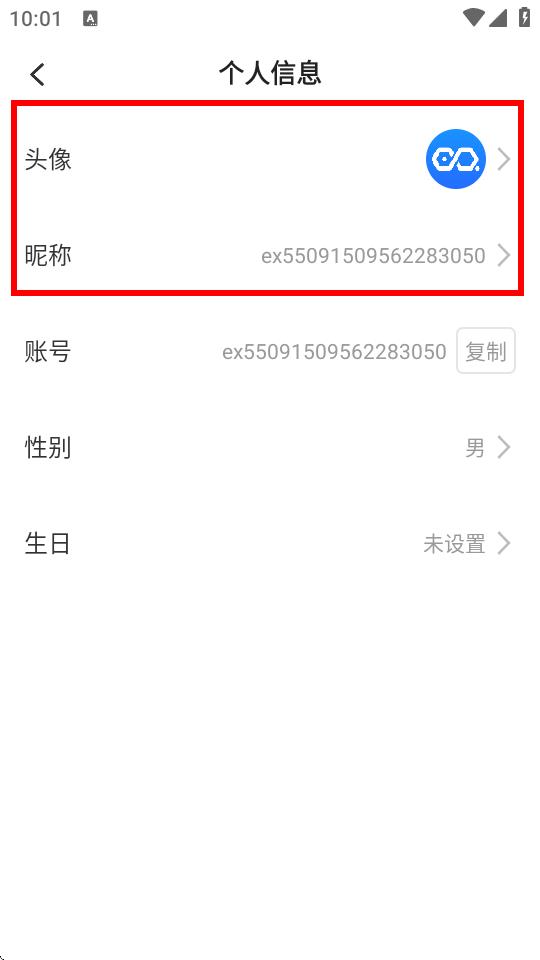 3、在個人信息頁面,點擊頭像選項可進行頭像修改,點擊昵稱選項進入修改昵稱界面。